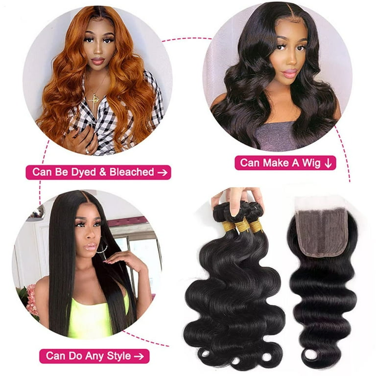 Ustar Body Wave Bundles And Closure 100 Unprocessed Virgin Brazilian Hair Weave Bundles With Free Lace Closure Middle Part Natural Black Bundles 10 12 14 Inch Closure 10 Inch Walmart Com